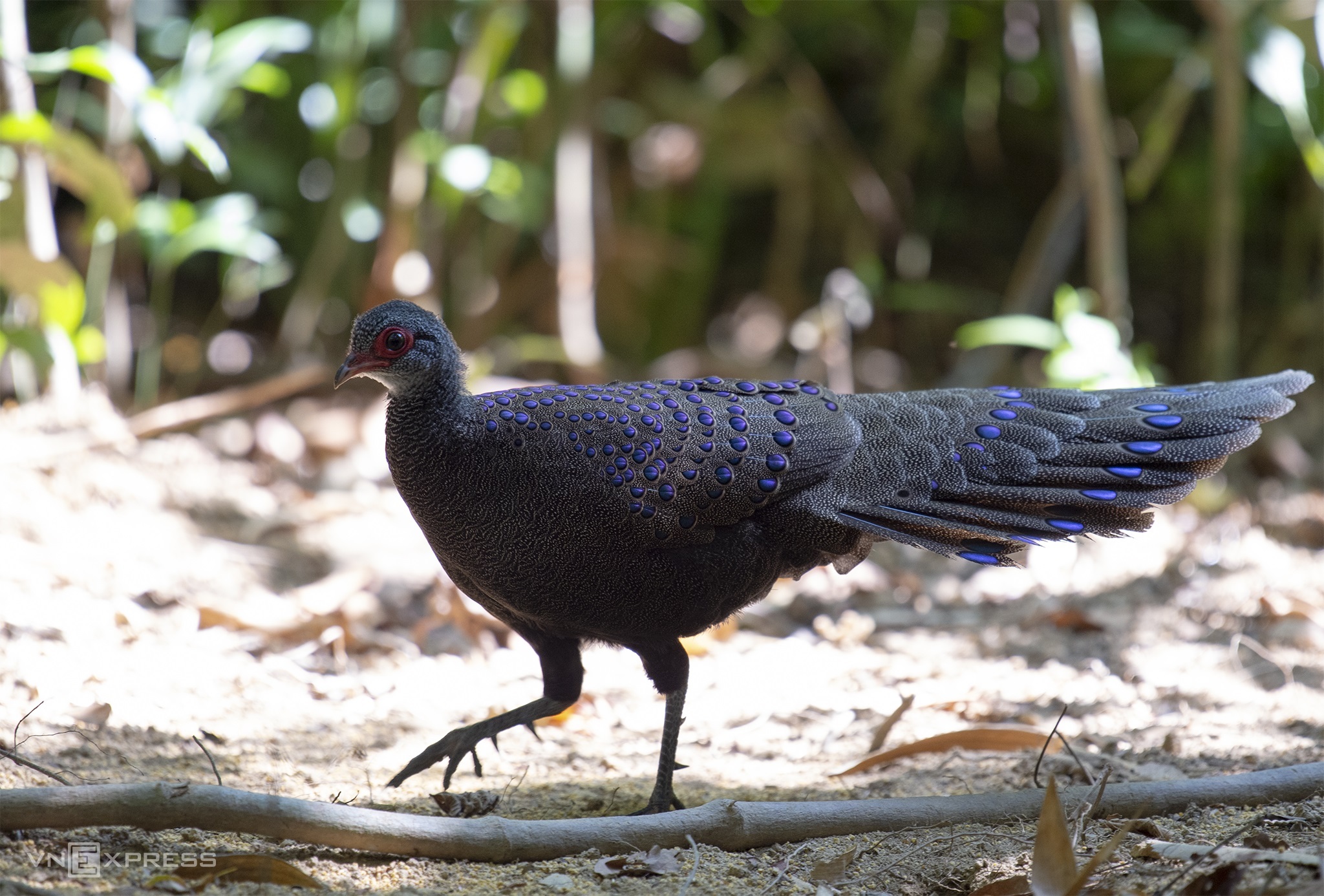Germain's peacock-pheasant (Polyplectron germaini) is endemic to mainland Southeast Asia. The name commemorates the French veterinary army surgeon Louis Rodolphe Germain. The bird, approximately 60 centimeters long, has a finely spotted buff, short crest, bare red facial skin, brown iris and purplish-blue ocelli on its upper-body plumage. (Photo: Andy Nguyen) |