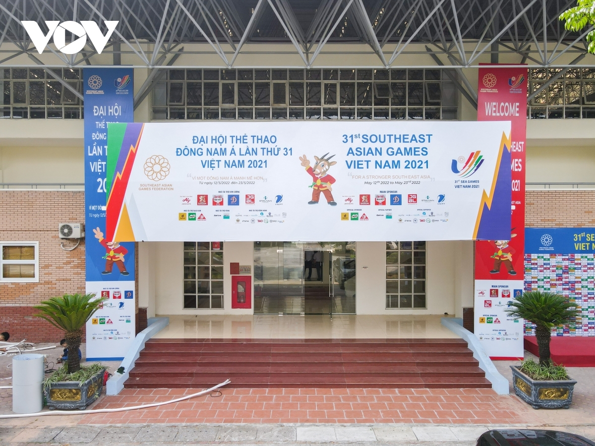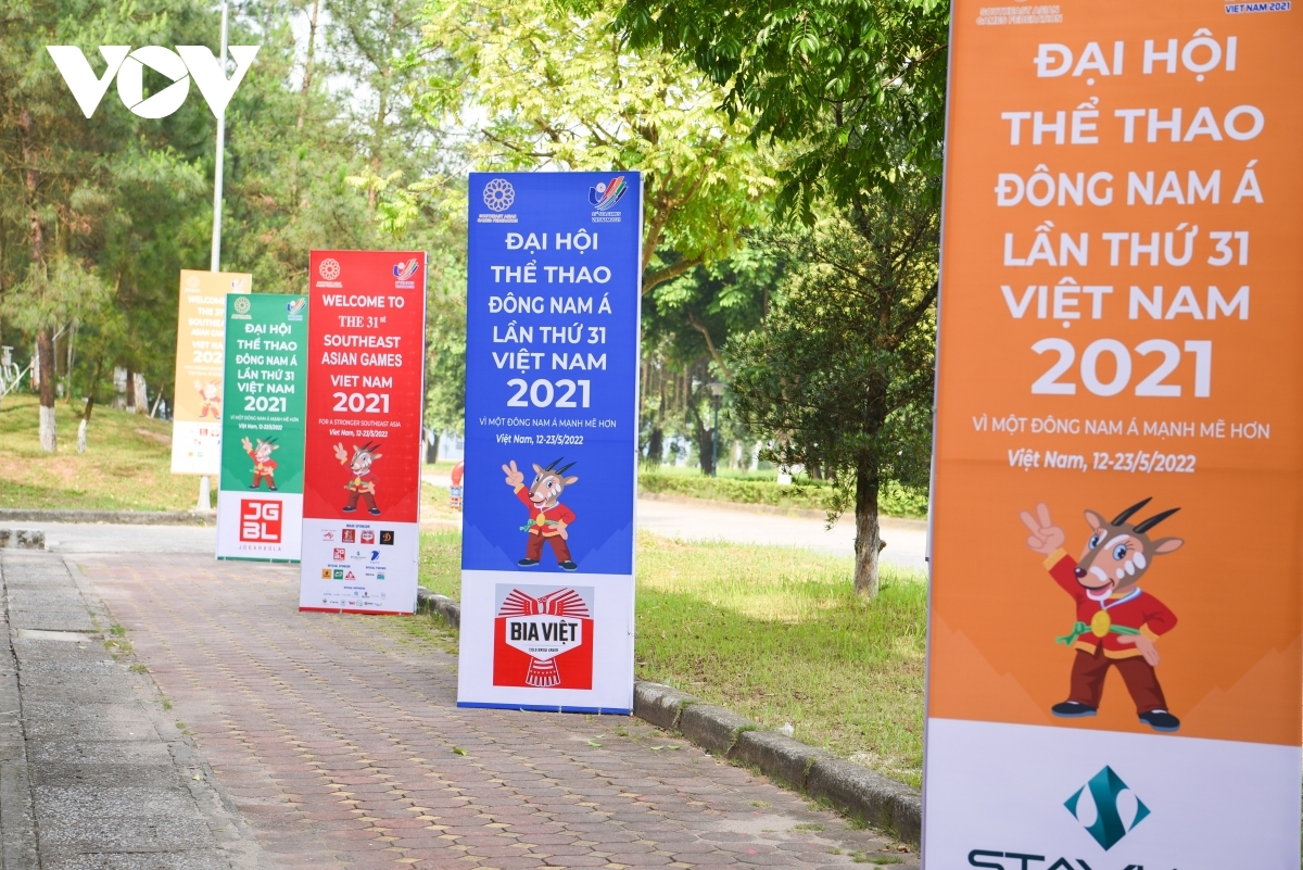 Posters advertising SEA Games 31 are placed along the entrance gate. |