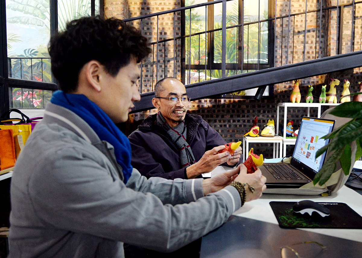 ![]() Mr. Pham Viet Hoai (founding member of Kym Viet Company) talks with garment factory staff about products. |
