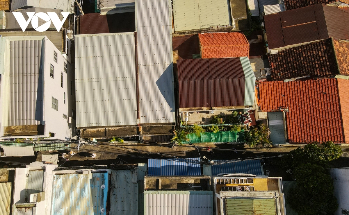 A residential area on Cao Xuan Duc street in Hai Chau district is recorded through a drone on August 29. |