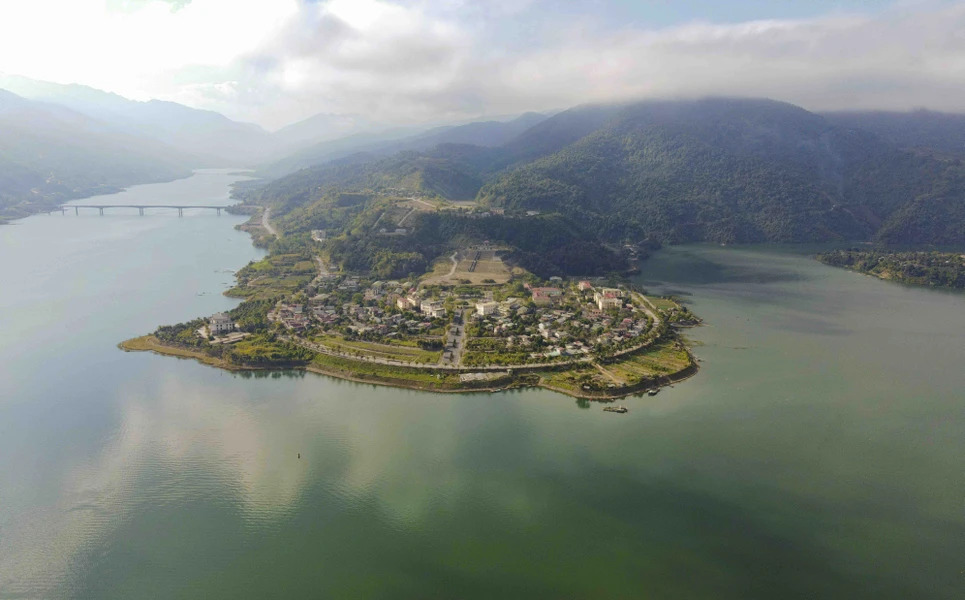 The town, consisting mainly of the Thai ethnic group, lies peacefully by the shores of the hydropower reservoir. (Photo: VNA) |