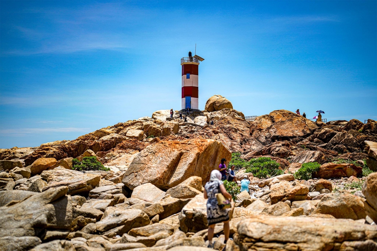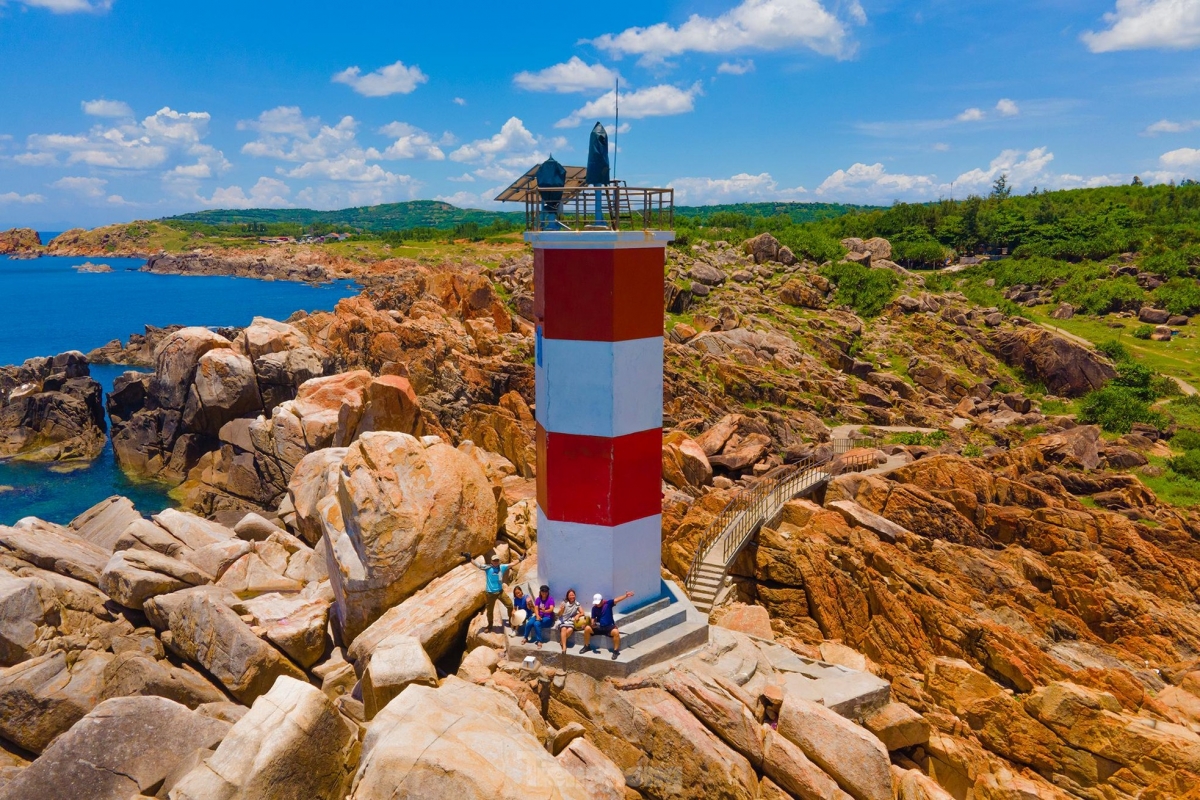 Ganh Den Lighthouse, sitting on the rocky shore, features an unprecedented magnificent red rock area, dense stones, and stretches along the coast for about 500 metres in many different shapes. |