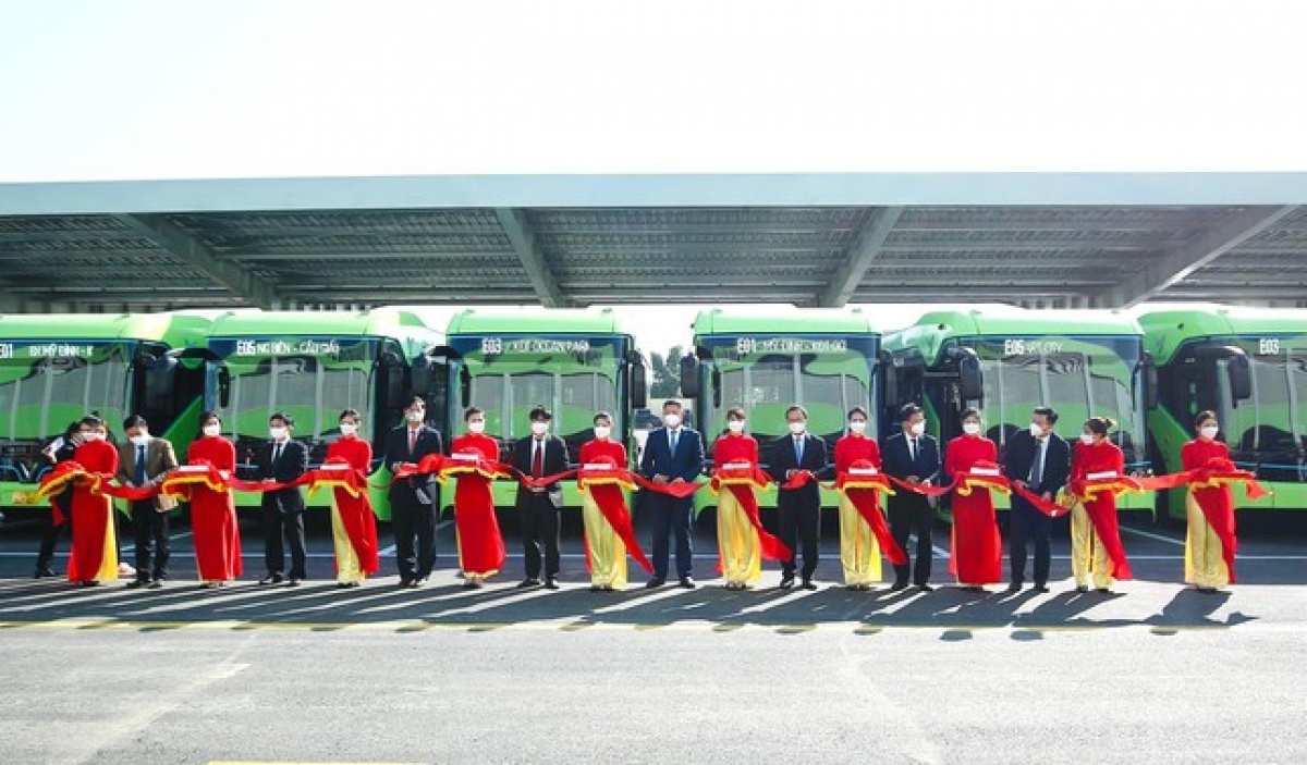 Hanoi welcomes the official launch of the first electric bus route on December 2, 2021. |