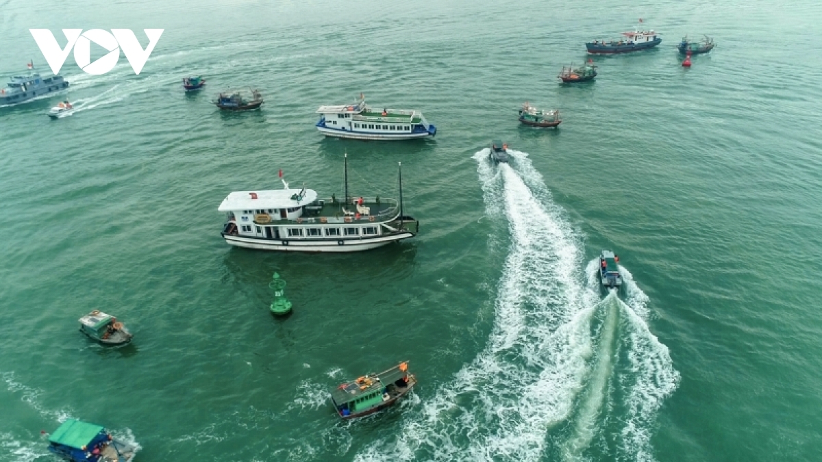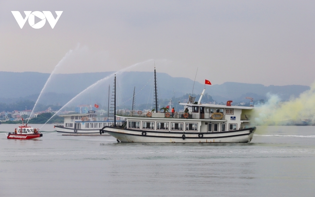Relevant forces immediately approach, guide and tow fishing vessels and cruise ships to anchor safely at Cai Lan port. |
