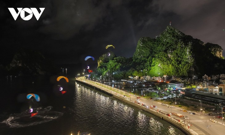 ![]() About 50 vehicles, including sailboats, jet skis, and parasails from clubs inside and outside the province joined performances against the backdrop of the rocky islands on Ha Long Bay, wowing audiences. |