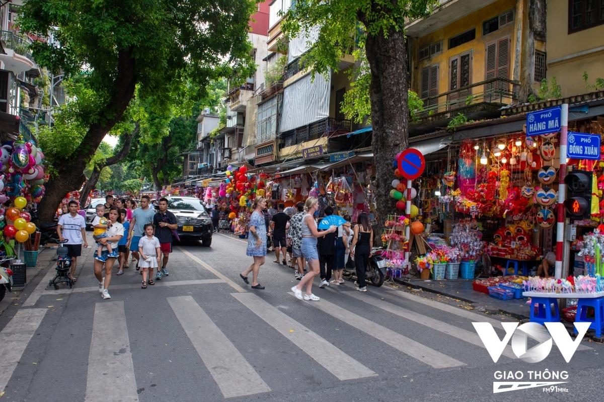 The festive atmosphere at Hang Ma street draws many foreign tourists. |