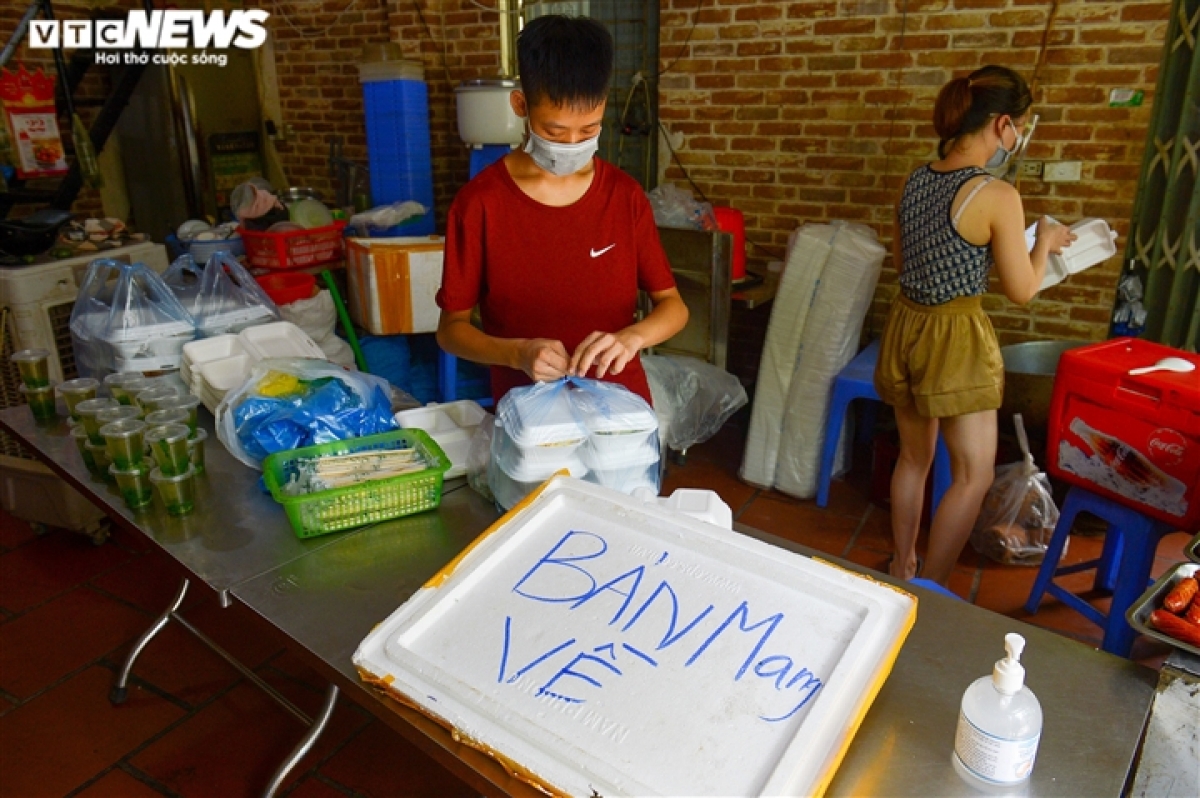 An eatery located on Ngo Xuan Quang street receives 50 orders upon reopening in the morning.