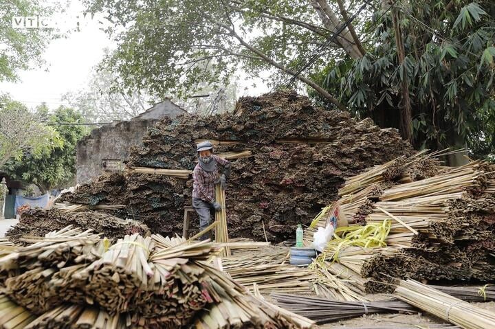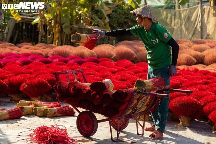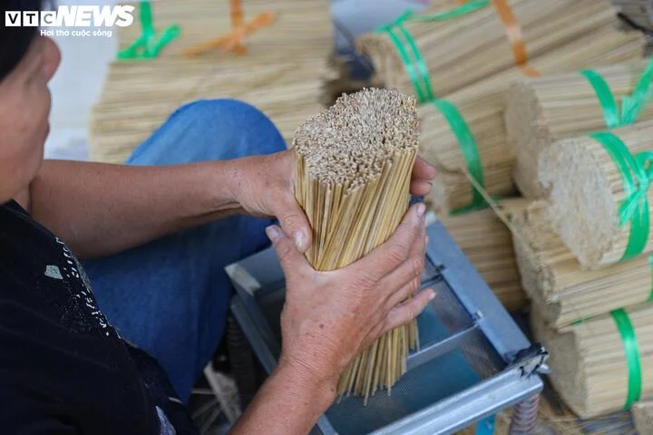 After drying, the incense sticks are bundled into 3kg packs and sent to incense production facilities across the country. In addition to supplying nationwide facilities, Quang Phu Cau village also has its own incense-making facilities. |