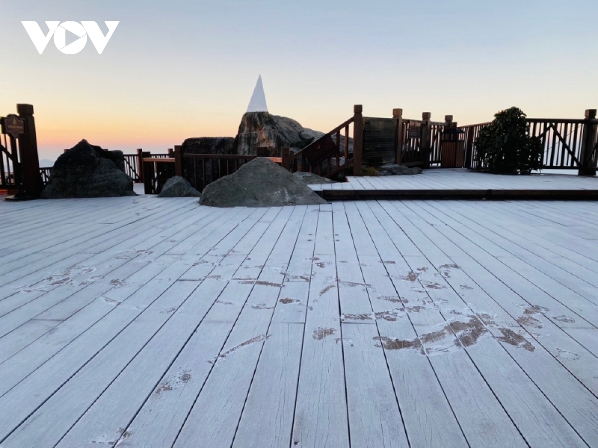 Tourists were thrilled at the sight of frost on the famous peak. (Photo: VNA/VNS)