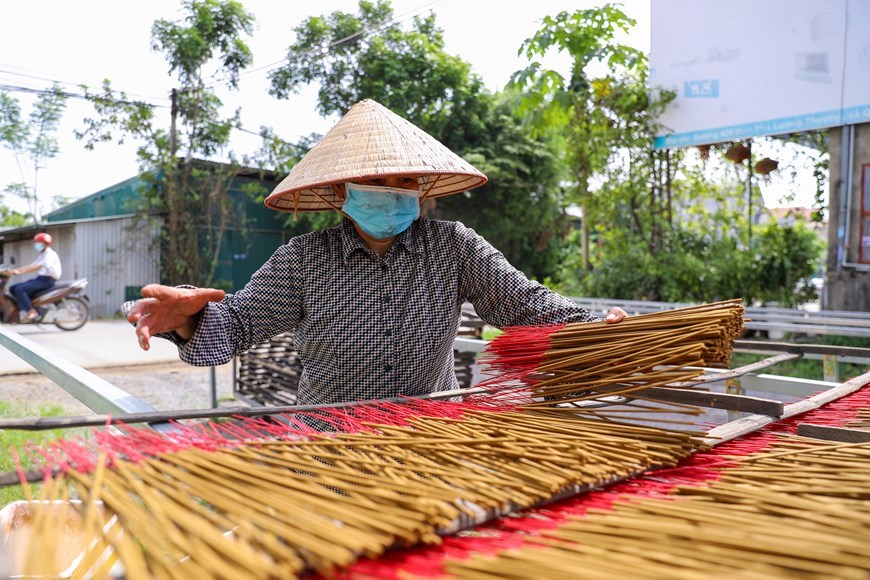 Incense-making workshops in Quang Phu Cau resume their operation after nearly two months of business disruption due to social distancing. (Photo: VNA)