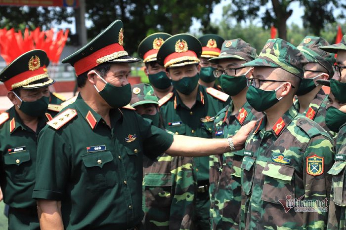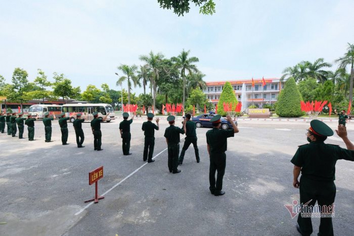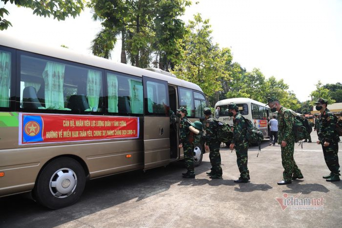 Military doctors and nurses say farewell to their friends before leaving for Ho Chi Minh City. |