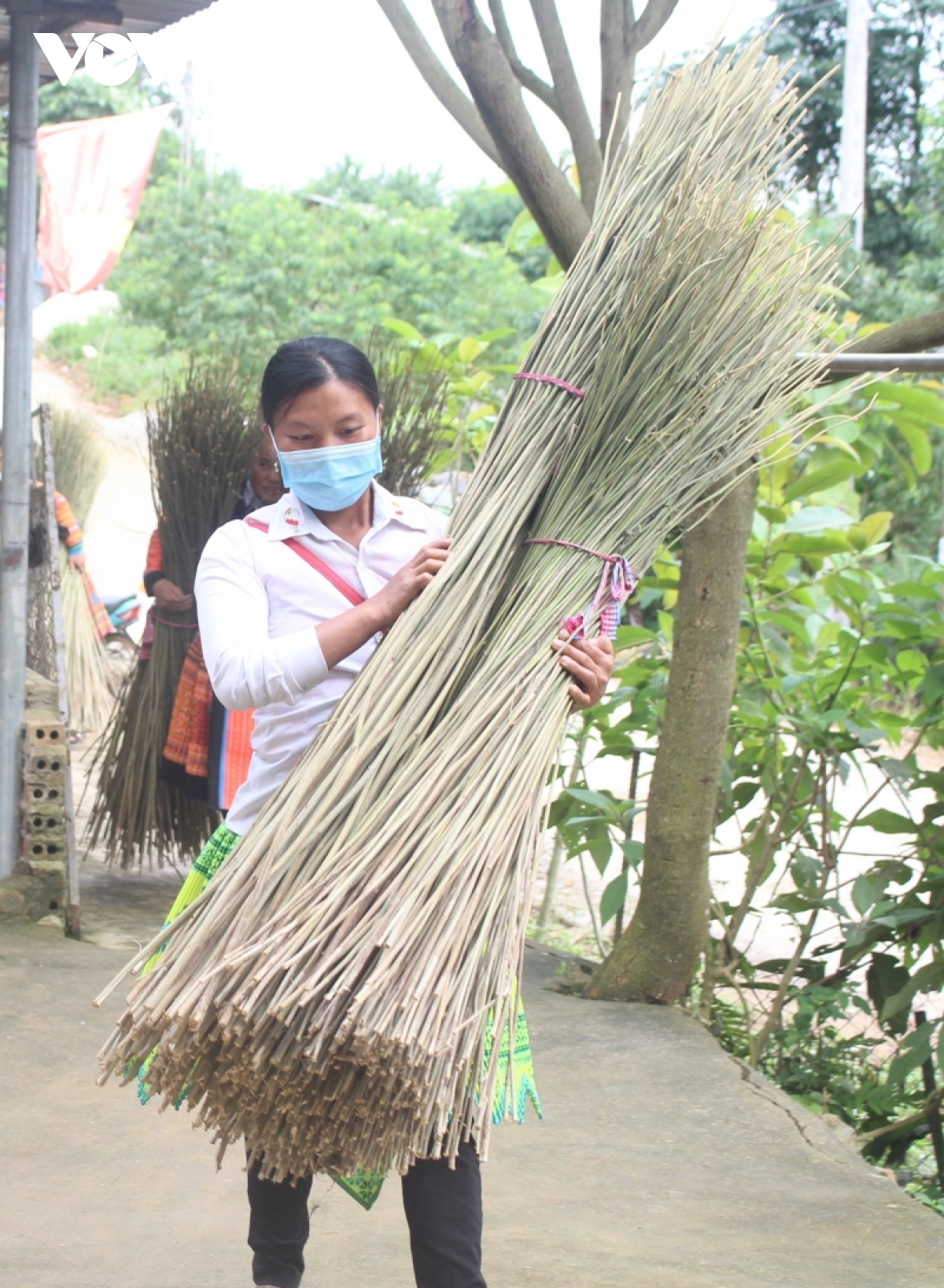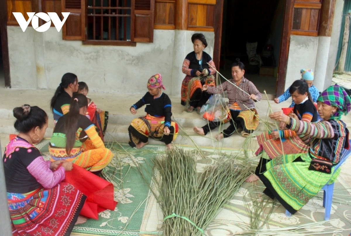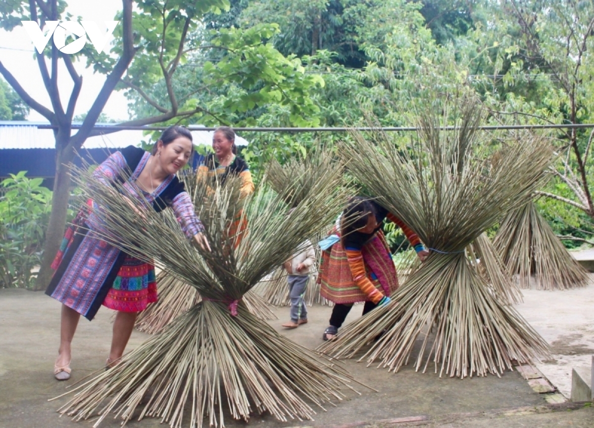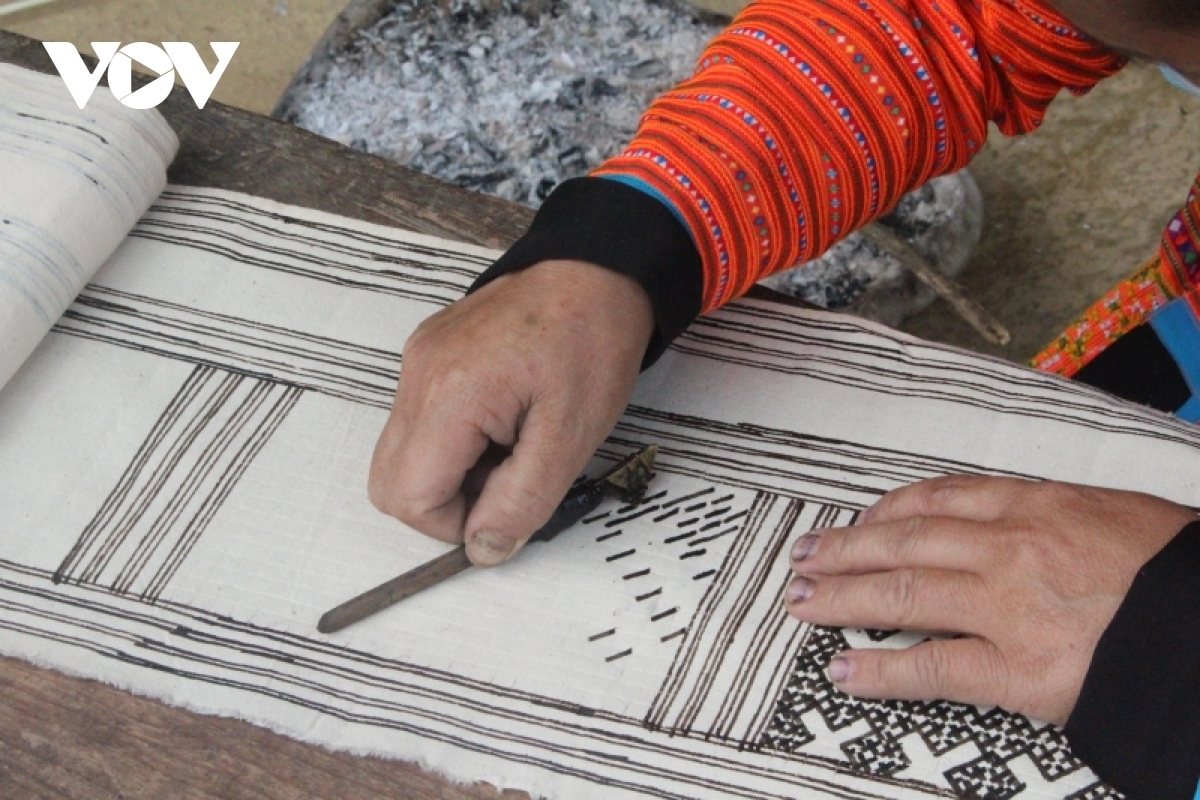 ![]() Traditional decorative patterns of the Mong people can be seen on their linen sheets. |