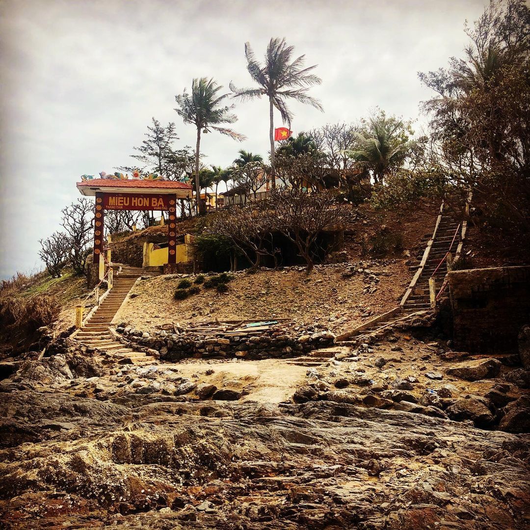 | On low-tide days, visitors can walk to Hon Ba temple on a jagged stone path. (Photo: @jkhobson) |