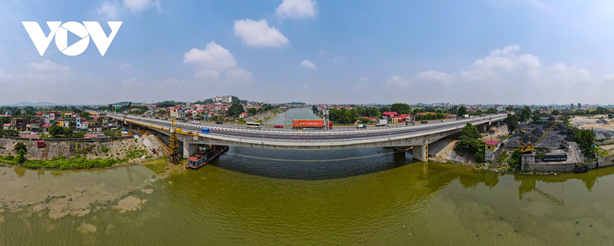 The bridge is 1.32 km long, starting in Quang Chau commune, Bac Giang province, and ending in Dap Cau ward, Bac Ninh city. It is a much-anticipated part of the Hanoi-Bac Giang Highway. (Photo: Van Giang/VOV)