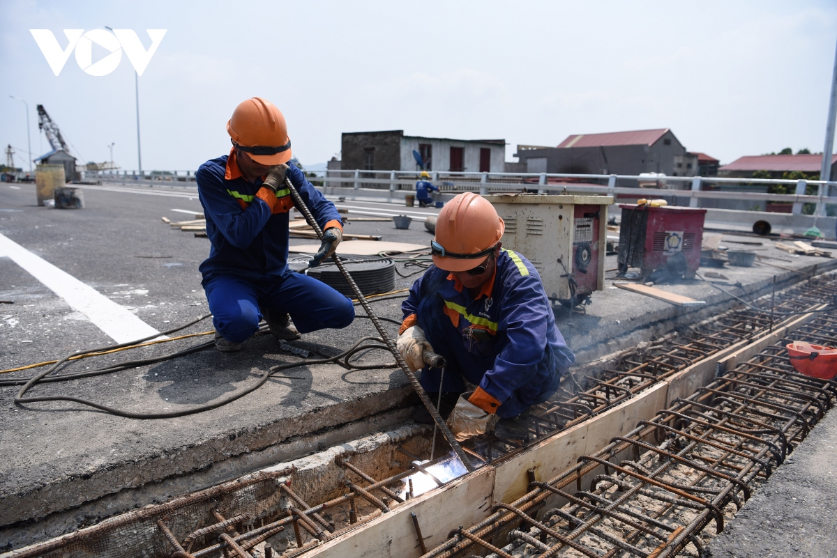 Speaking to VOV, a representative of the project’s management board said the bridge is 98% finished and will be ready for traffic in late June 2023. (Photo: Van Giang/VOV)