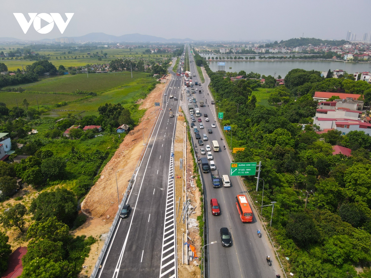 The project is expected to help ease the traffic from Hanoi to Bac Giang province, serve the traveling demands of industrial zones, and attract more investment. (Photo: Van Giang/VOV)