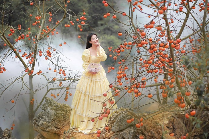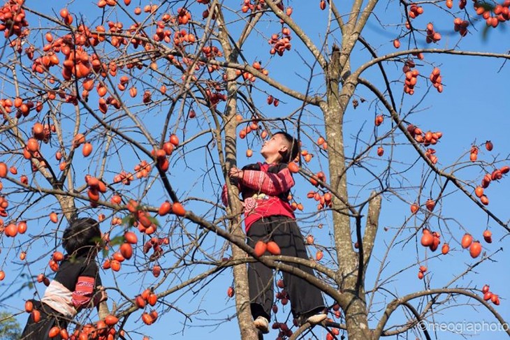 The ripe persimmons are eye-catching. (Photo: meogiaphoto/luxurytravel.vn)