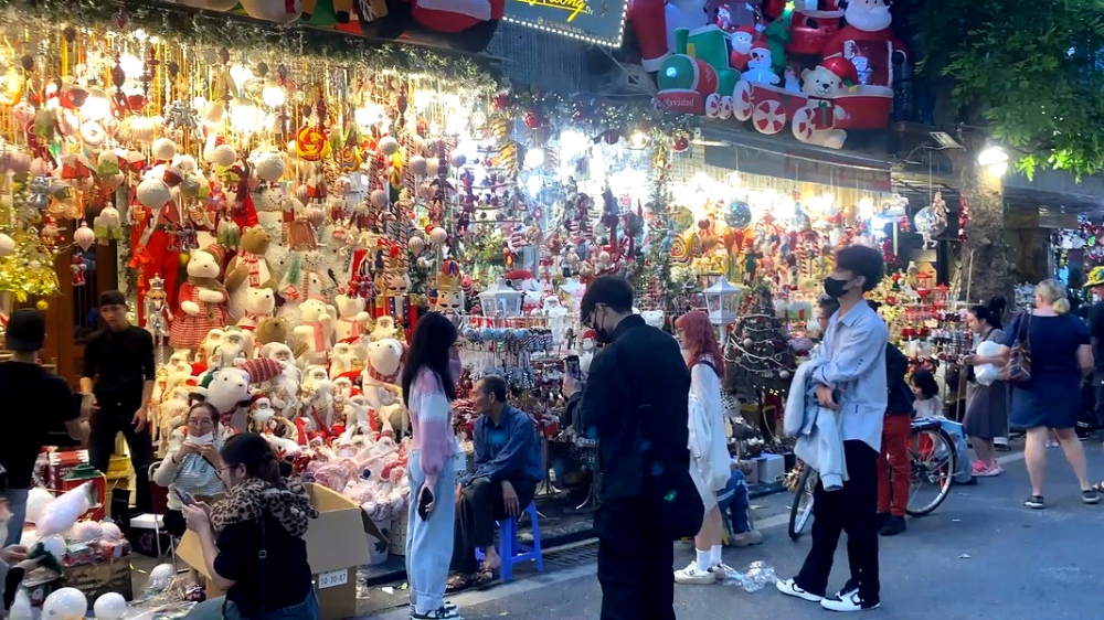 Hang Ma Street has transformed into a Christmas market, offering a one-stop destination where all festive ornaments for this special occasion can be found.