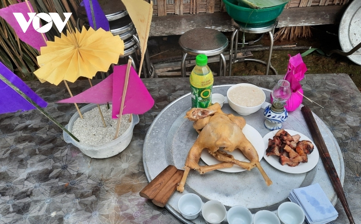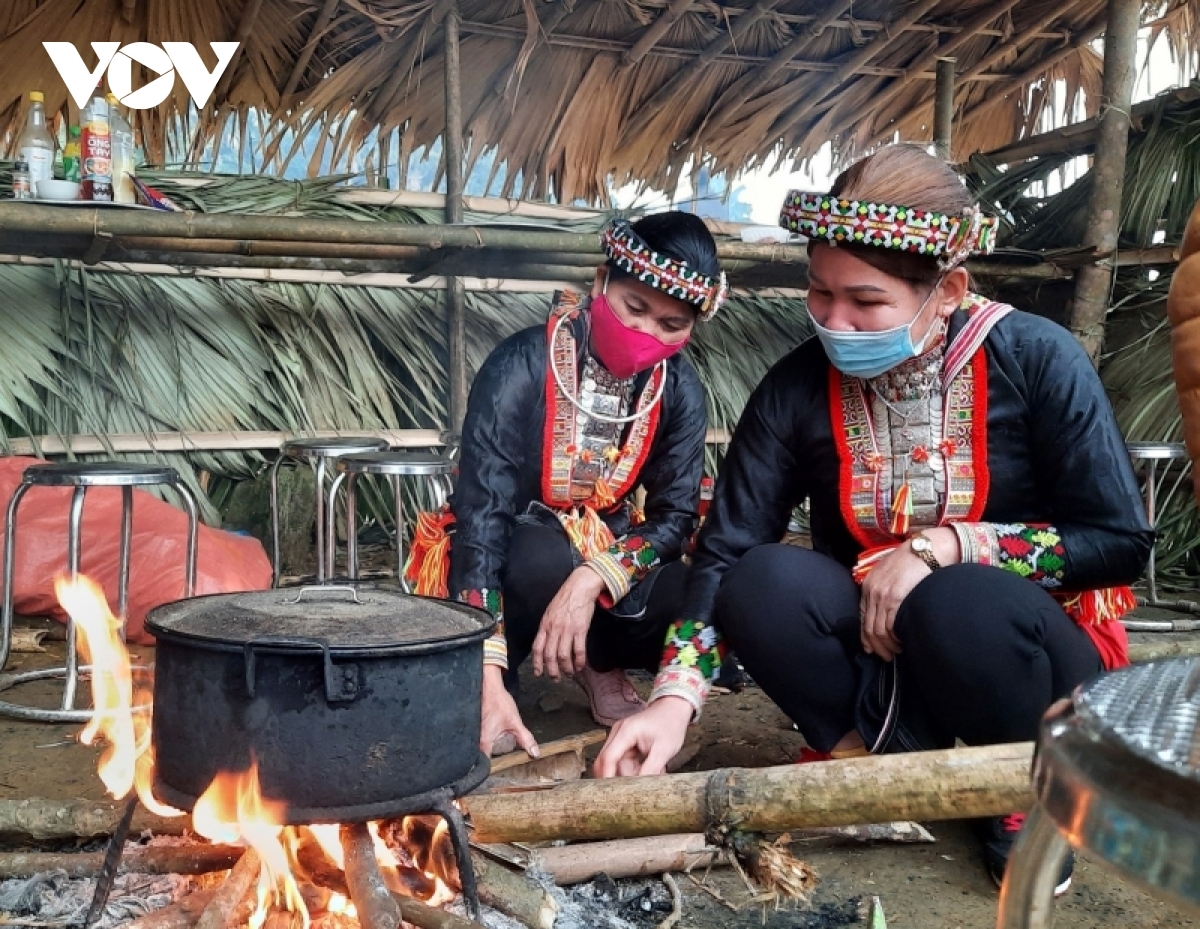 | Villagers cook traditional dishes to offer to deities and ancestors. |