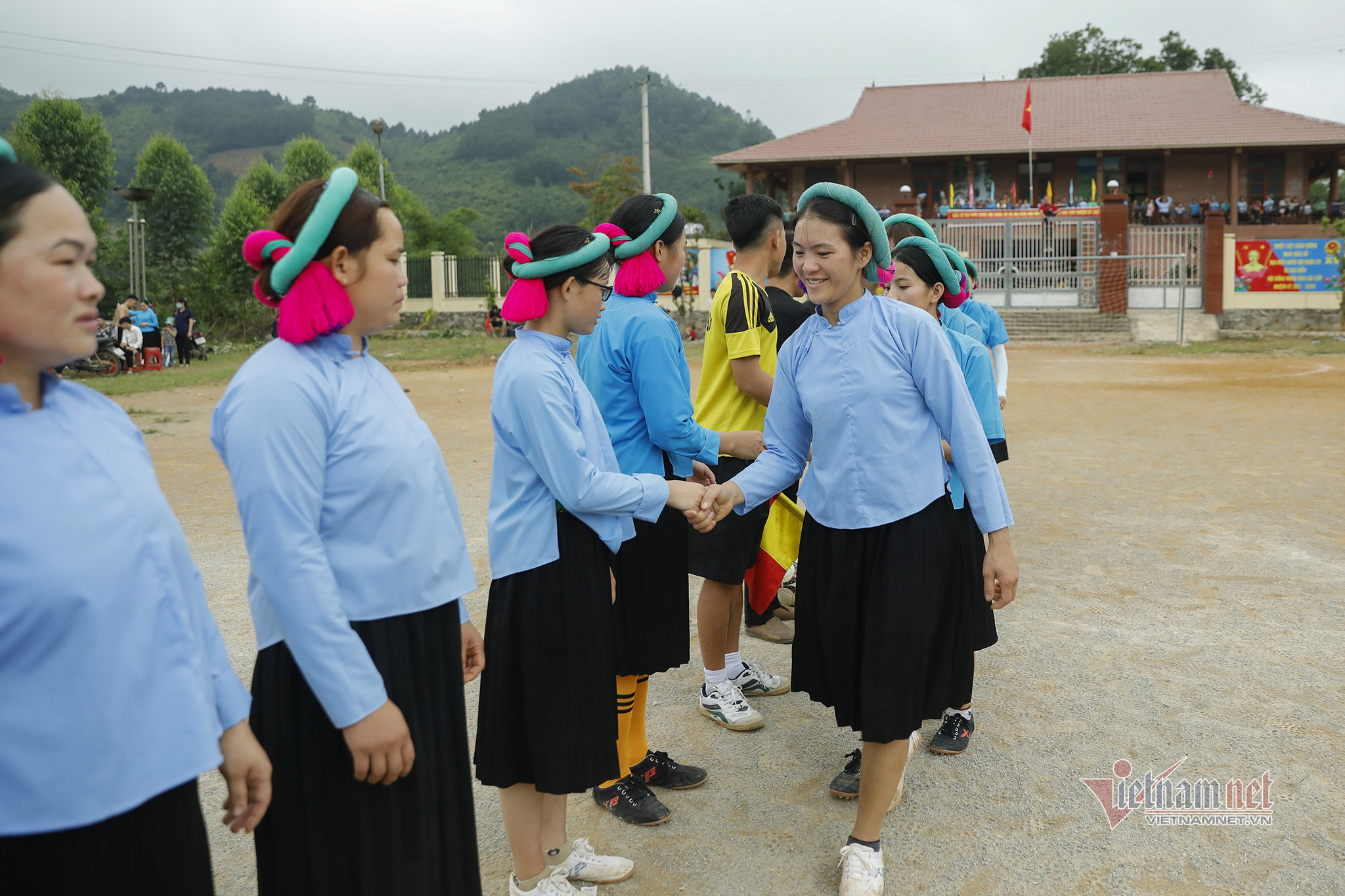 Women's football is popular in Vietnam but the image of young girls of the San Chi ethnic minority group in Huc Dong commune in traditional costumes and headscarves playing football is especially impressive.
