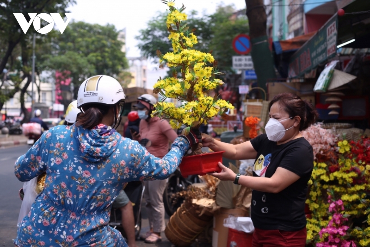 | Street vendors are busy selling their products on the last days of the lunar year. |