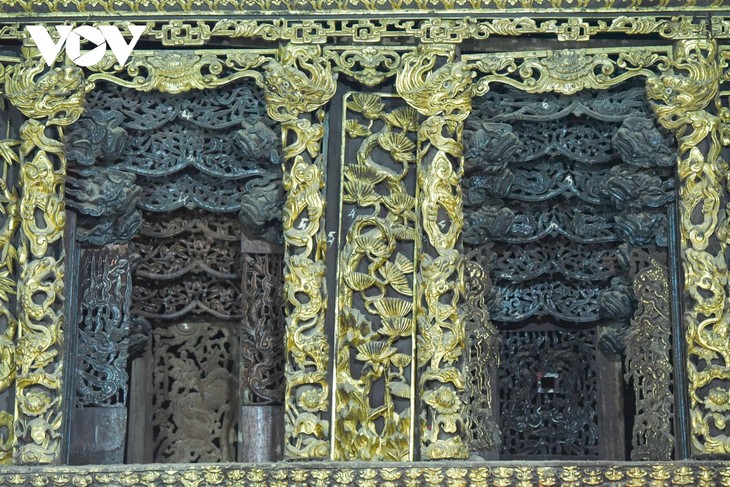 The gate of Tho Ha Communal House, a kind of gilded wooden curtain above the main altar of the Tho Ha communal house, is a masterpiece. Made between 1685 and 1692, it measures 4.9m high and 4.3m wide. Photo: Van Giang/VOV.VN |