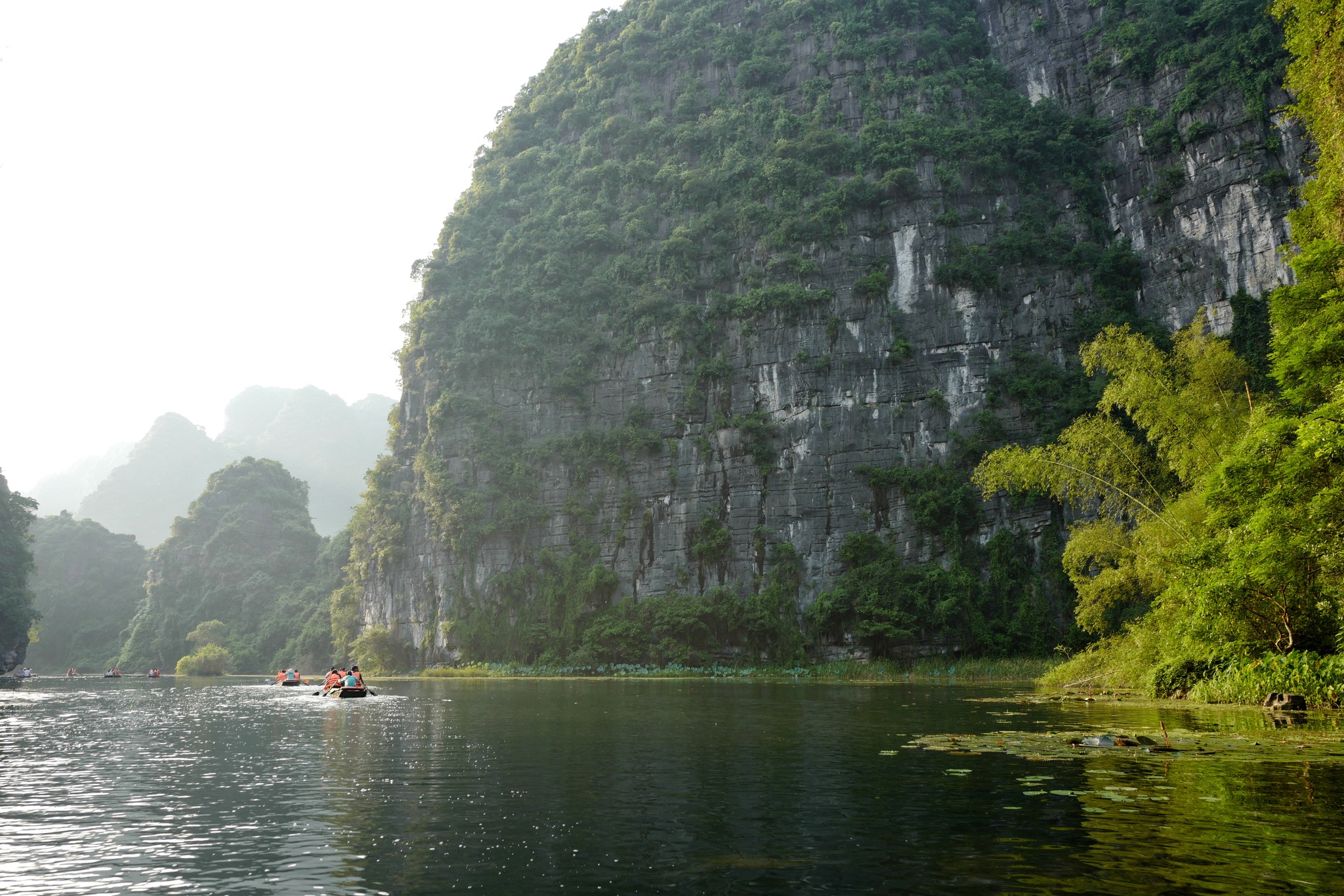 Temples and pagodas dot the Trang An Landscape Complex, hidden in the lush greenery and towering cliffs. |