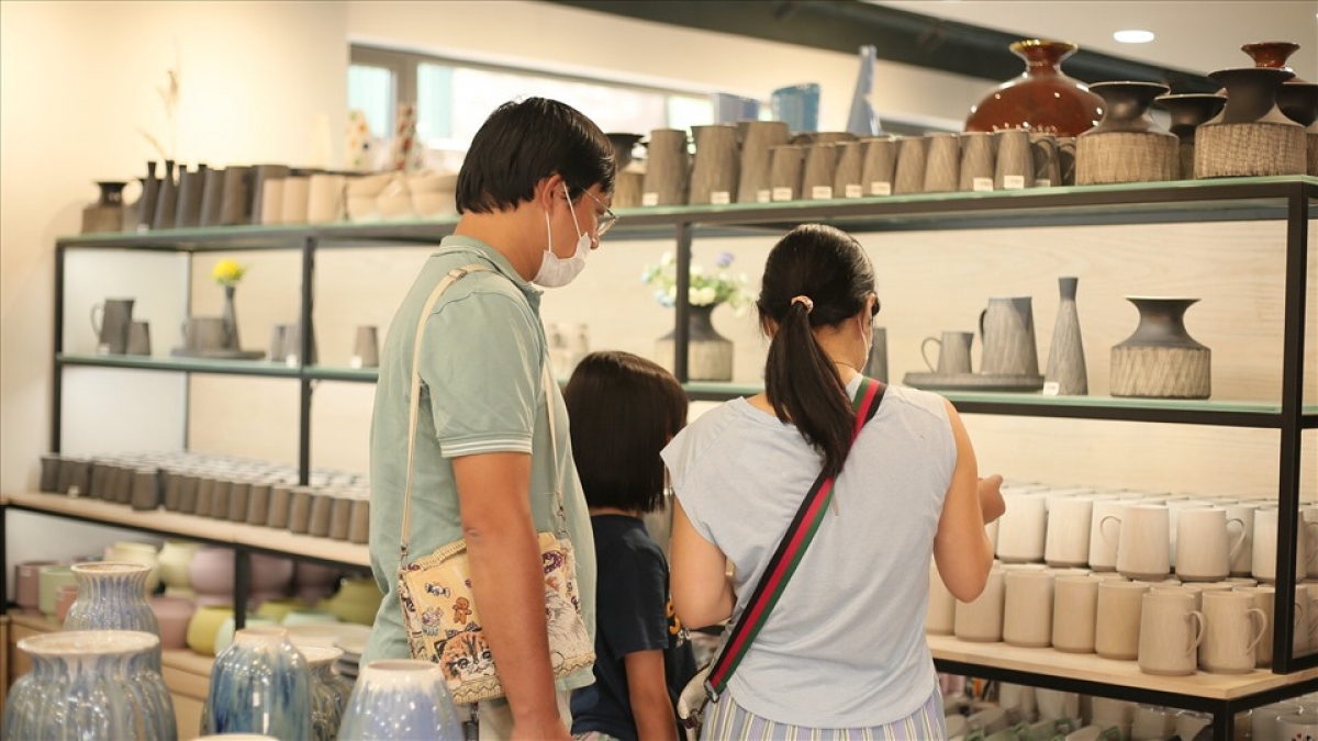 A range of ceramic products created in unique glazes and shapes are put on display. |