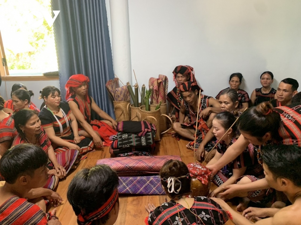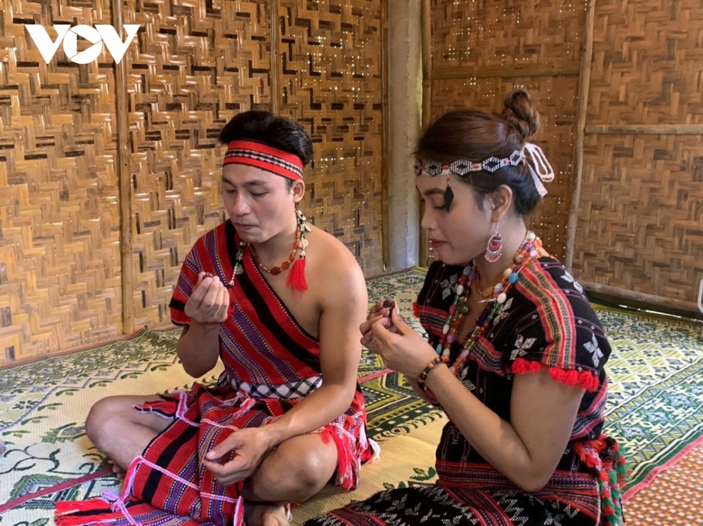 Before the marriage proposal ceremony, the man’s family has to inform the Heaven God and their ancestors of the event. The man’s family will then give jewelry to the girl’s family to confirm their ties. (Photo: VOV)