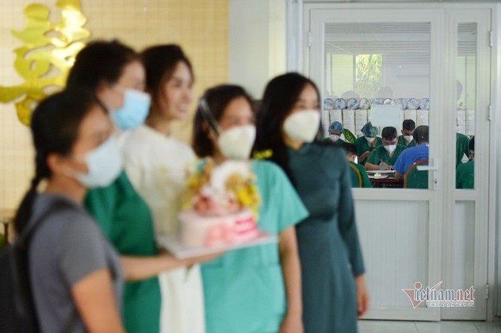 The wedding room is the administrative room of Field Hospital No.16 while in other rooms, doctors are treating COVID-19 patients. (Photo: vietnamnet.vn) |