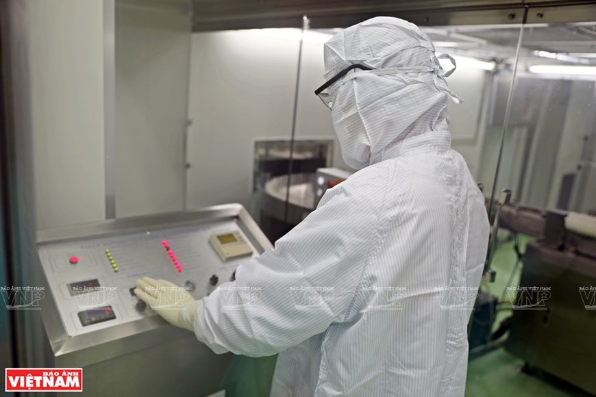 The process of injecting Sputnik V vaccine into the vials is fully automated. (Photo: VNP/VNA) |