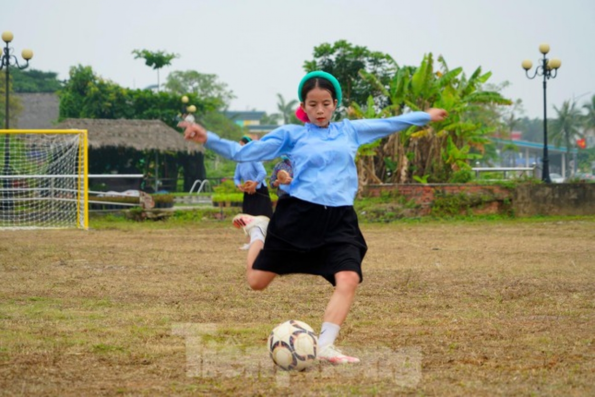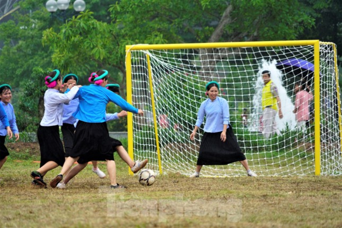 The San Chi ethnic women leave a positive impression on spectators while dressing in their traditional outfits and enthusiastically chasing the ball. |