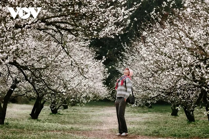 From early December, snow-white plum blossoms begin to bloom, spreading their pristine color across the rolling hills of Moc Chau Plateau. |