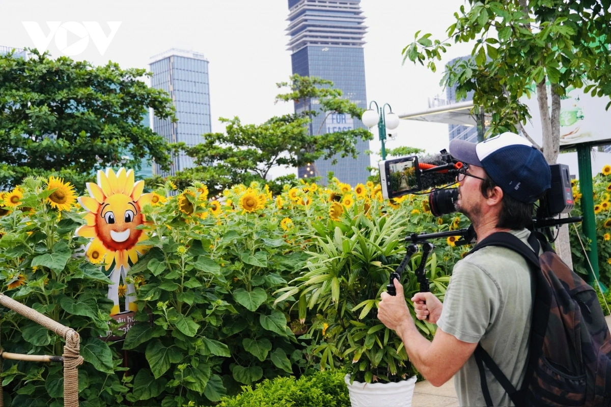 Some 18,000 sunflowers are stretching along the Saigon River Park. |