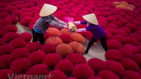 (VOVWORLD) - Quang Phu Cau village in Ung Hoa district, 35 kilometres from downtown of Hanoi, is famous for its century-old craft of making incense. Everywhere in Cau Bau, Phu Luong Thuong, and Dao Tu hamlets in the village, the streets have blazed pink and red of incense sticks