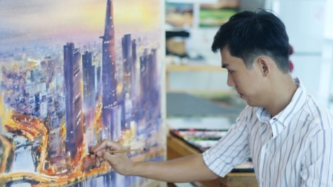 (VOVWORLD) - Young painter Doan Quoc created brilliant landscape paintings using watercolors, the most outstanding of which depict Ho Chi Minh City.