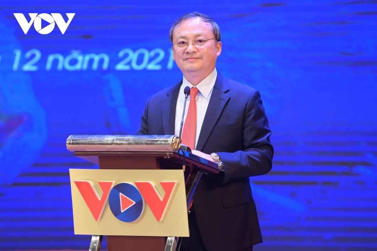 Voice of Vietnam President Do Tien Sy speaks at the award ceremony. (Photo: VOV)