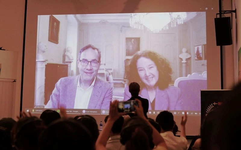 Mats Malm, writer, translator and Secretary of the Swedish Academy and author Anna-Karin Palm and Vietnamese participants during the online exchange (Photo: Bach Duong) |