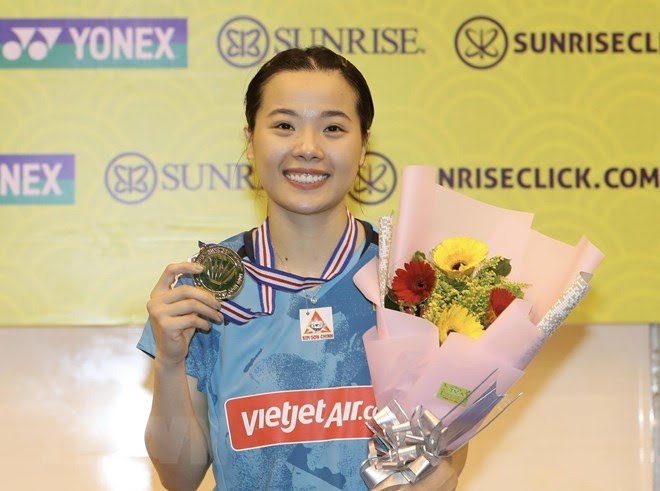 Nguyen Thuy Linh wins the Vietnam Open badminton tournament 2023. (Photo: Thanh Vu/VNA)