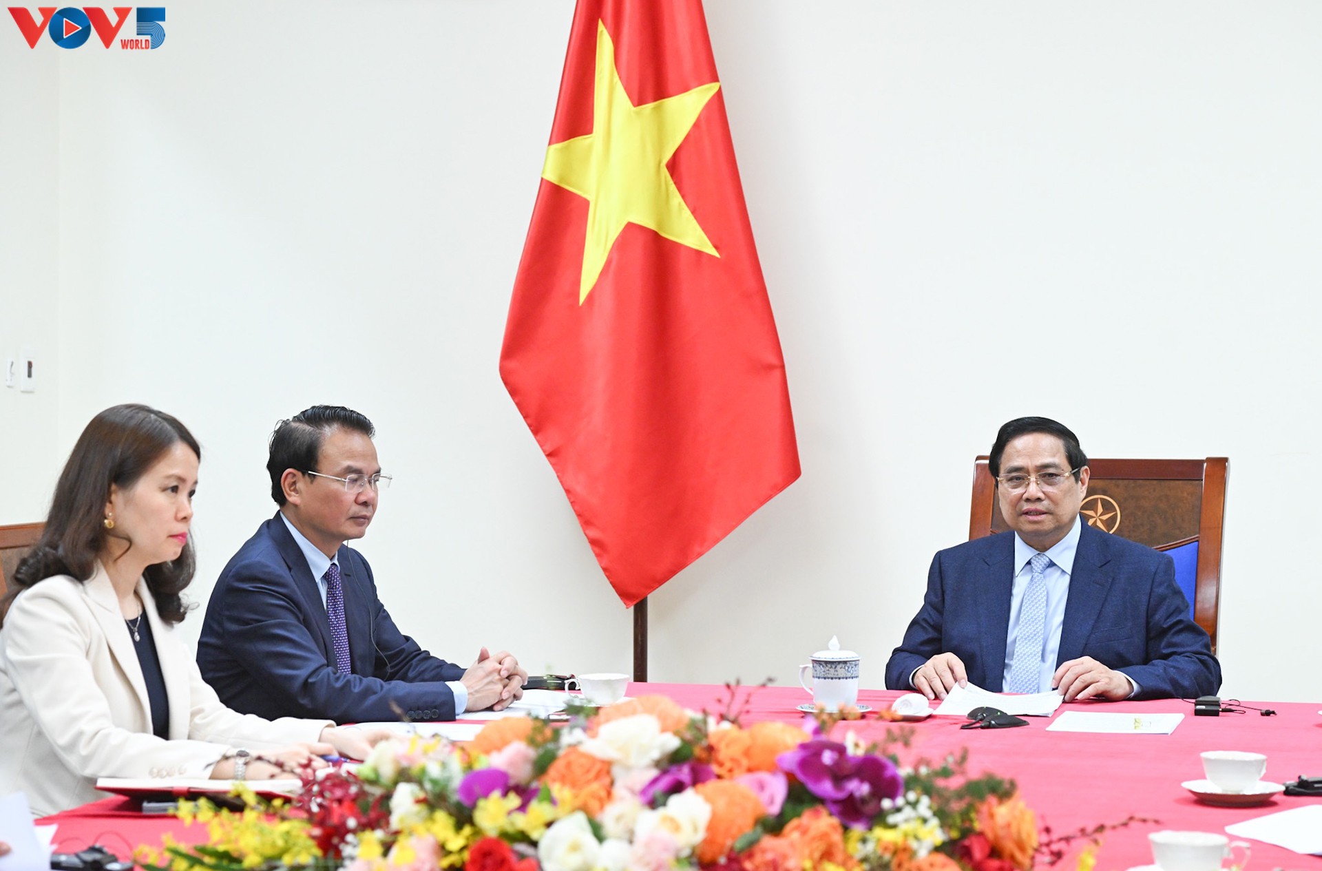 Prime Minister Pham Minh Chinh holds phone talks with the Prime Minister and Minister of Foreign Affairs of the State of Qatar, Sheikh Mohammed bin Abdulrahman bin Jassim Al-Thani. (Photo: Lai Hoa/VOV)