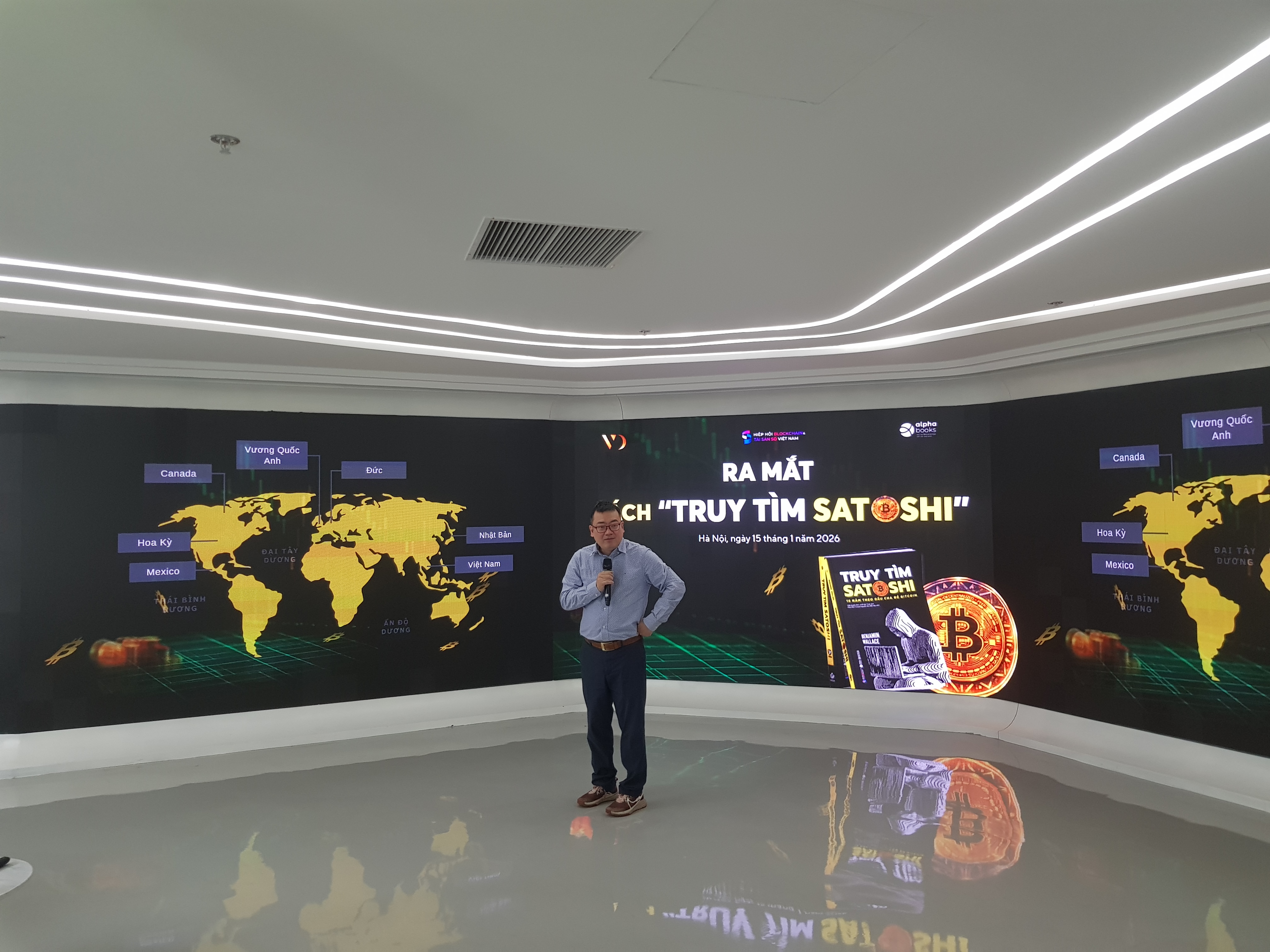 The organizers introduce the book "Hunting Satoshi: 15 Years in Search of Bitcoin’s Creator". (Photo: Ngoc Anh/VOV5)