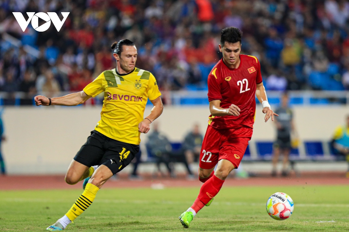 In the first half, Dortmund took the lead with striker Malen opening the score in the 13th minute. Tien Linh had an equalizer in the 36th minute. At the end of the second half, the Vietnamese team was given an 11-meter penalty and Pham Tuan Hai successfully finished, sealing the 2-1 final score.