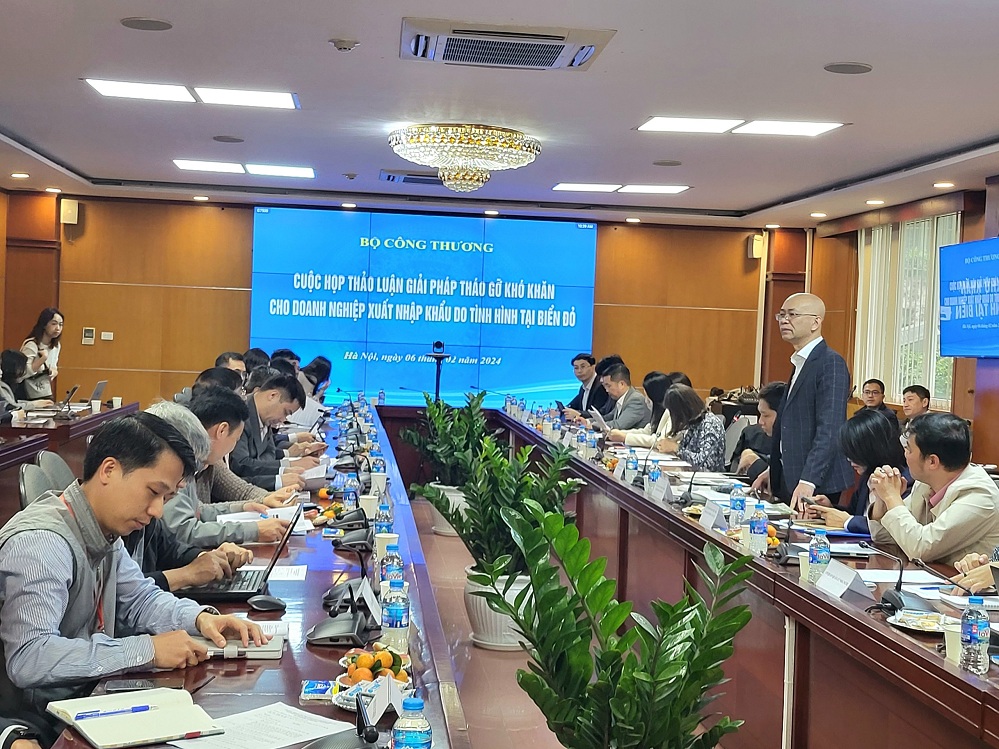 Business executives and officials from the Vietnam Maritime Administration and the Ministry of Industry and Trade seek ways to respond to Red Sea tensions at a meeting in Hanoi on February 6, 2024. (Photo: VOV) |