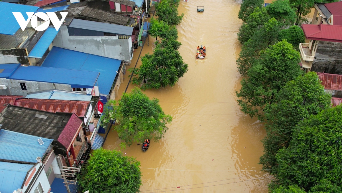 Thai Nguyen province is submerged deeply in water due to prolonged heavy rain triggered by Typhoon Yagi. (Photo: VOV) |