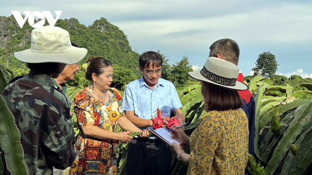 Dr. Vu Quang Giang discusses with farmers red flesh growing techniques. (Photo: VOV)