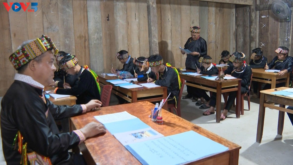 Every evening, elders and children gather at the small house of 60-year-old Hoang Thong Chu to learn the old Dao Nom script.