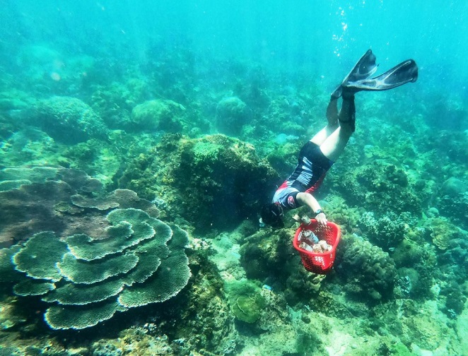 As water sports coach, Trung also collects rubbish in the sea bed. He said the magnificent coral reefs off Son Tra peninsula are being ruined by plastic bags and bottles. Trung said picking trash in the sea is much more difficult than on land because it requires excellent diving and swimming skills. Moreover, trash collectors may be attacked by dangerous creatures.