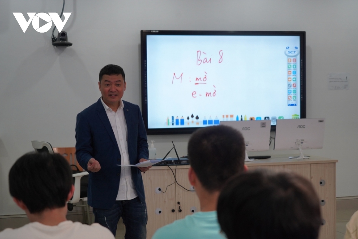 Nguyen Xuan Dien teaches Chinese students. (Photo: VOV) |