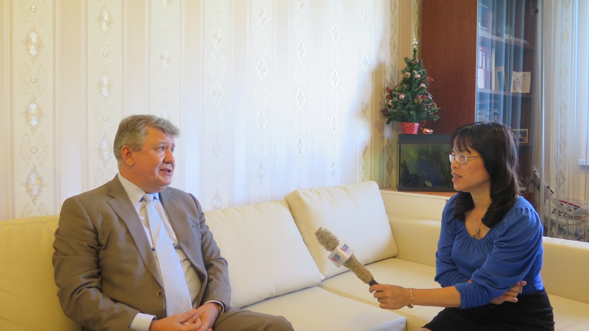 (VOVworld) - Российский дипломат Андрей Григорьевич Ковтун два срока занимал должность генконсула СССР и РФ в городе Хошимине. Недавно он окончил свой срок работы с 2009 по 2014 год в качестве чрезвычайного и полномочного посла РФ во Вьетнаме. В связи с 70-летием со дня основания вьетнамской дипломатии, корреспонденту Радио «Голос Вьетнама» удалось взять интервью у Андрея Ковтуна.