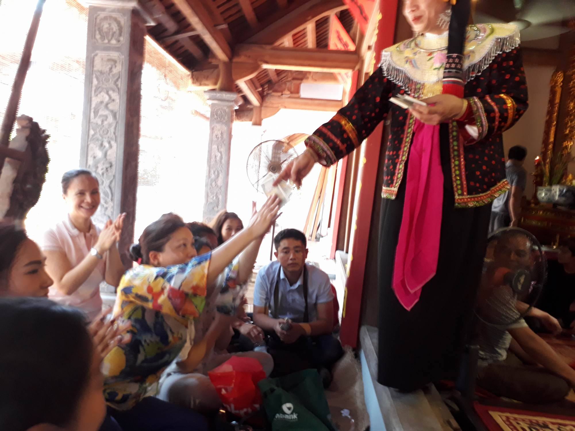 Тем временем, госпожа Ким Кхань рассказывает: «Сегодня, чтобы лучше понять культуру Вьетнама, я пришла сюда на эту церемонию, которая прошла в приподнятой атмосфере. Особенно мне понравилось, как жрица бросала деньги людям, пришедшим за благополучием и успехом».